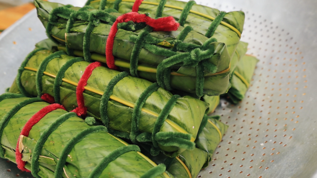 包制粑粑的手艺不考究,但要包得饱满有形,着实要花费不少时间。只见王金花指尖灵动,叠展粽叶,以彩糯铺底,填入本地土猪肉、草果、花生调和的鲜香馅料,再覆上一层糯米,双手对折裹紧,细绳均匀捆扎,松紧相宜,牢牢锁住食材本味。